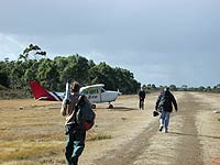 following morning at the airstrip. At Cloudy Bay the weather was very windy